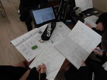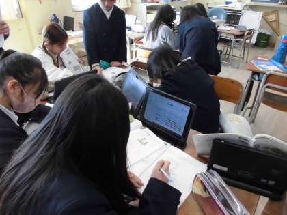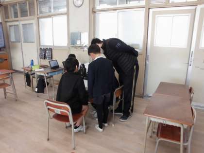 3年生は算数の学習の振り返りをグループに分かれて、分からないところは教え合って学習していました。友だちにヒントをもらったり、それぞれが解答した答えを言い合って見たりして、問題が解けたり、解答が同じだったりすると喜んでいました。