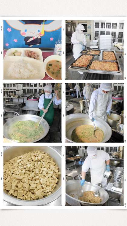 献立は、豚肉のしょうが焼き・みそ汁・高野どうふの煮もの・ごはん・牛乳でした。