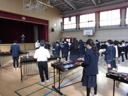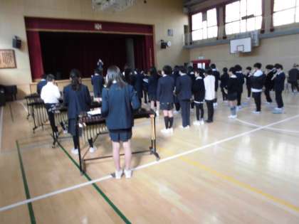 5年生は講堂で6年生を送る会の練習を始めました。今までは音楽室と教室に分かれてパート練習が多かったけれど、楽器を講堂に下したので、一斉に木琴や鉄琴などの楽器とリコーダーなどが合わさった練習になります。上手に音が重なるよう頑張っています。