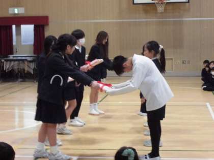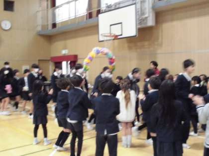 6年生からぞうきんのプレゼントがありました。最後に花道を拍手で送りました。みんな頑張った素敵な、6年生を送る会でした。