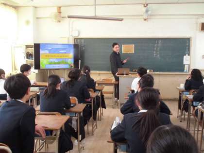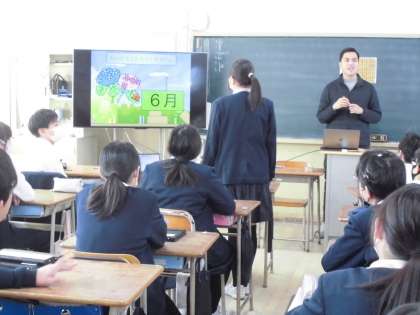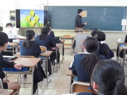 6年生は外国語でCNETの先生が作成した番号ゲームに挑戦しています。グループの代表が番号を選ぶと、英語の問題が出てきます。それに正解すると、グループにコインが与えられます。グループで協力して学習したことを楽しく復習しています。