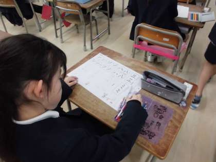 1年生は硬筆書写をしています。丁寧にゆっくり書くときれいな文字に仕上がります。