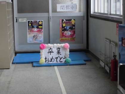 校内のあちこちで、卒業をお祝いする掲示物が見られます。