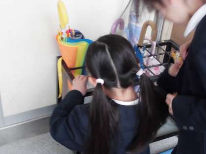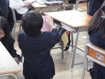 1年生は教室をきれいに掃除をしています。机やロッカーなど、新しい1年生を迎える準備です。みんながんばっています。