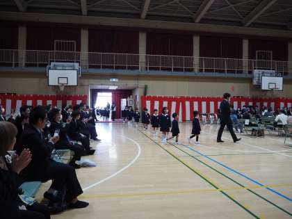 今年も素晴らしい晴天に恵まれ、令和7年度入学式が行われました。今年度は40名の子どもたちが入学しました。たくさんのご来賓、保護者の方に来ていただきました。笑顔いっぱい入場してきた子どもたちに温かい拍手をいただきました。校長先生からお祝いのお話や担任の先生が紹介されました。お話をしっかり聞くことができていました。保護者会の後、教室で担任の先生からお話がありました。
