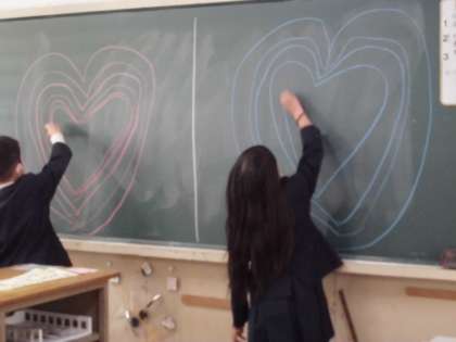 始業式で新しい担任が発表されると、各教室で学級開きが行われました。新しい教科書を手に、嬉しそうに見つめたり、新しいクラスの友達と自己紹介タイムを行ったり、クラスみんなでハートをかく学級ゲームをしたり、それぞれの学級で楽しく過ごしていました。