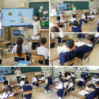 3時間目、国語の学習。国語の教科書を見ながら、気づいたことや知っていることを発表していました。