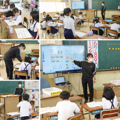 4時間目、算数の学習。数の合成と分解について学んでいました。この時間の数は「6」です。