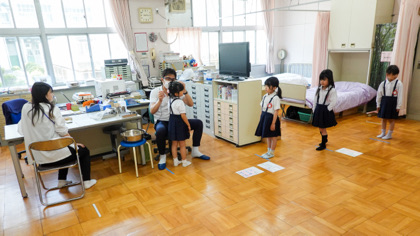午前中、学校医の先生に来ていただいて、耳鼻科検診が行われました。全学年の児童対象で、検診は2時間ほどで終了しました。学校医の先生、ありがとうございました。