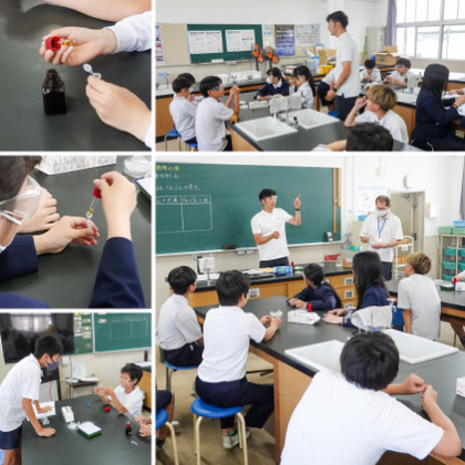 2時間目、理科の学習。理科室で実験をしていました。でんぷん・だ液・水・ヨウ素液を使った実験です。