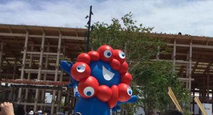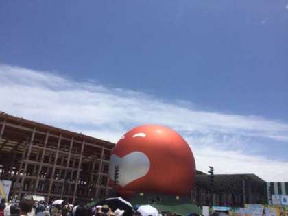 ミャクミャク前で記念撮影して、いよいよガンダムの中へ。風はあるけれど暑いですね。