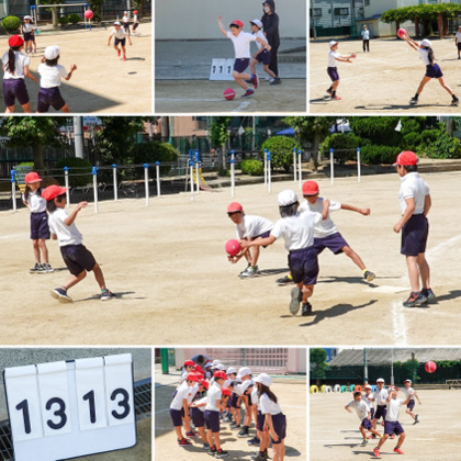 1時間目、体育の学習。キックベースボールで盛り上がる子どもたちです。