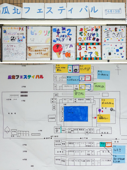 2時間目、13日(金)の瓜北フェスティバル(異学年で交流する児童会活動)に向けて、たてわり班ごとで教室に集合し活動しました。