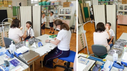 歯科検診では、虫歯がないかどうかはもちろん、歯に歯垢がついていないか、歯茎等が炎症をおこしていないか、嚙み合わせは大丈夫かなどを調べています。治療が必要なことが分かった場合は、できるだけ早く歯科に行って検査・治療するようにしてくださいね。