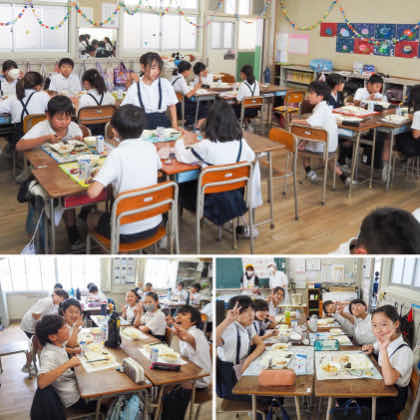 緊張、懐かしさ、うれしさ。いつもとは少し違う雰囲気の給食を楽しんだ子どもたちです。