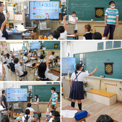 3時間目、外国語(英語)学習。「曜日クイズ」をしていました。