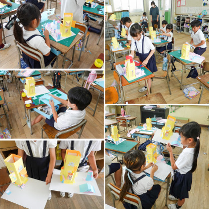 3時間目、図工の学習。立体作品を作っていました。