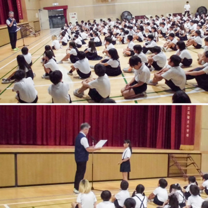 続いて、「社会を明るくする運動 平野区大会 作文コンテスト」で入賞した、6年生児童の表彰がありました。おめでとう! 児童のみなさん、夏休みの図画工作・読書感想文のコンクールにも、ぜひ挑戦してみてくださいね。