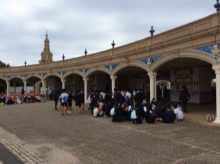 志摩スペイン村に到着しました。集合写真を撮って、グループ活動開始です。