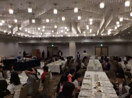 夕食の時間です。明日の昼食まで、バイキング形式の食事が続きます。バランスよくお皿に盛りつけて、おいしくいただきました。
