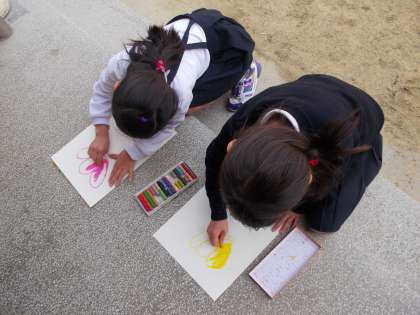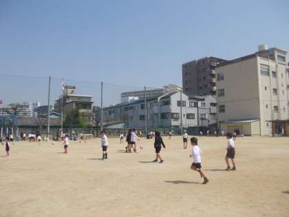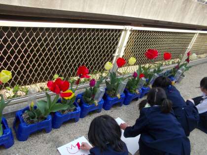 運動場で元気よく遊んだり、校庭でチューリップを観察していたりしていました。