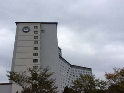修学旅行2日目が始まりました。パラパラと雨が降る中、朝の集いを行いました。