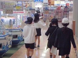 グループに分かれて見学し、お客さんやお店のの様子や工夫しているところを見て回りました。店員さんにインタビューもして、疑問に思っていることなどをいろいろと質問しました。