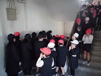 延期していた避難訓練を本日実施しました。今回は、給食室からの出火を想定して避難を行いました。