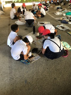 アルスカラーを使って模様を描いたり、文字を書いたりしました。