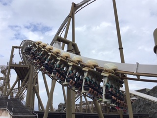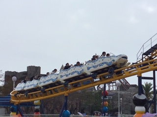 グループ活動の様子です。小雨が降ったりやんだりしていますが、雨を気にもせず、アトラクションを楽しんでいます。