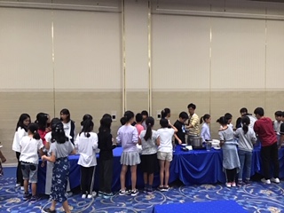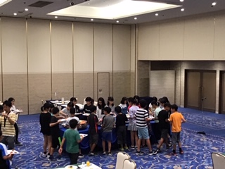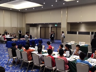 避難訓練を終え、夕食となりました。美味しそうな料理が並んでおり、どれから食べようか迷ってしまいます。バランスの良い食事になるように、いろいろと考えてお皿に乗せていました。