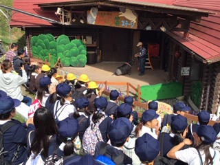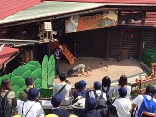 昼食後、ミニブタ芸を見ました。ソーセージ作り体験が始まるので、最後まで見ることができませんでしたが、ブタの意外な運動能力に驚かされました。