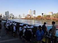 6年生が社会見学で大阪歴史博物館に行きました。午前中は、大阪水上バス「アクアライナー」に乗り、大阪城・中之島めぐりをしました。普段目にすることがない、水上から見た大阪の街を楽しむことができました。午後は、大阪歴史博物館でグループごとに見学をしました。たくさんメモを取りながら、大阪の歴史について学習する様子が見られました。