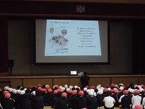 学校保健委員会に、全校児童・学校医、地域・保護者のみなさんが参加をし、健康について考える機会を持ちました。今年のテーマは、「おいしくたべよう げんきをつくろう」でした。保健委員会の子どもたちが「おいしさ」についてのアンケートや食物アレルギーに関する絵本を読みました。大阪市の食育基本テーマとして、「バランスよく食べよう・朝ごはんを食べよう・野菜を食べよう・いっしょに食べよう・よくかんで食べよう・よく見て食べよう・大切に食べよう」の紹介もありました。今日の学習で、自分の健康や友だちの体のことを考えることができました。