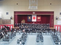 穏やかな陽気の中、平成31年度の入学式を行いました。今年は55名の新1年生が入学してきました。式では、大きな声であいさつをしたり、深々と礼をしたりする姿が見られ、とても立派でした。また、新2年生は、「歓迎のことば」で、呼びかけや合奏を披露し、1年生を楽しませてくれました。