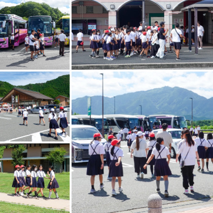 「赤松パーキングエリア」と「道の駅 但馬のまほろば」の2か所で、トイレ休憩の時間を取りました。2か所とも、ハチ高原方面に向かうのであろう小学校団体のバスが数台並んでいました。