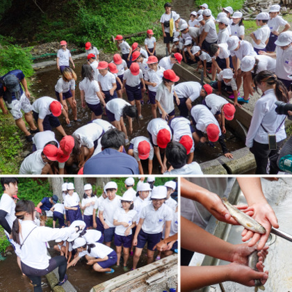 マスも必死。ゆったりと泳いでいるマスに狙いをつけて水の中に手を入れると、サッとスピードを上げて逃げます。放流直後でフレッシュなマス、捕まえられてなるものかと、命がけの大逃走。