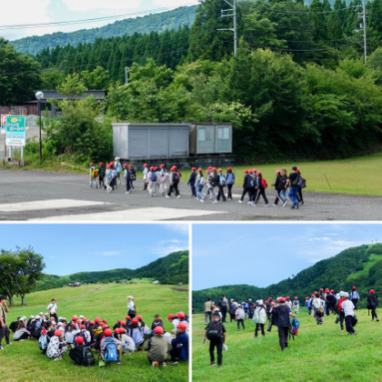 本日1つ目のプログラムは、「ハイキング」。ハチ高原での自由遊びです。