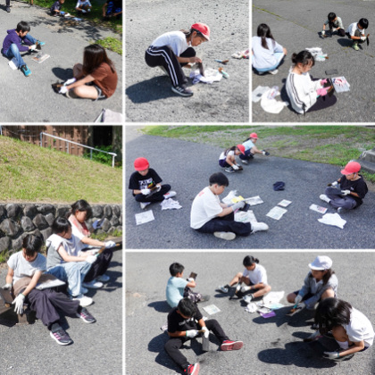 引き続き、「焼き板みがき」が始まりました。焼き板にべったりついたすすを、たわしでこすり落とし、古布で磨きます。触ってもすすがつかず、木目がくっきり浮かび上がって、板につやが出てきたらできあがりです。