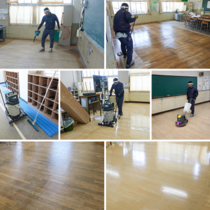 業者の方にお願いして、各教室のワックスがけをしていただきました。