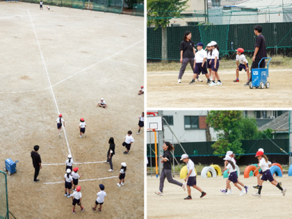 スタートの合図で全力疾走。「がんばれー!」の声援が飛んでいました。1学期から、記録は伸びていたかな?
