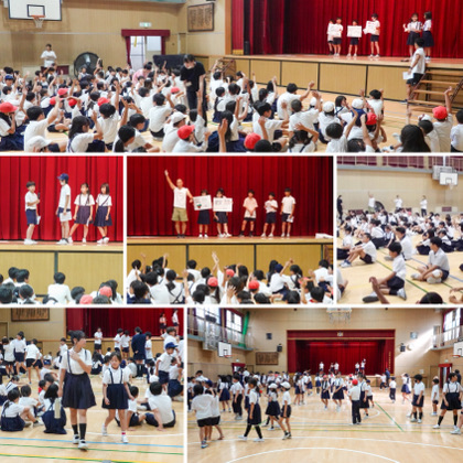 朝の時間、体育館で児童集会が行われました。集会委員会の児童が企画・運営する、今年度6回目の集会です。