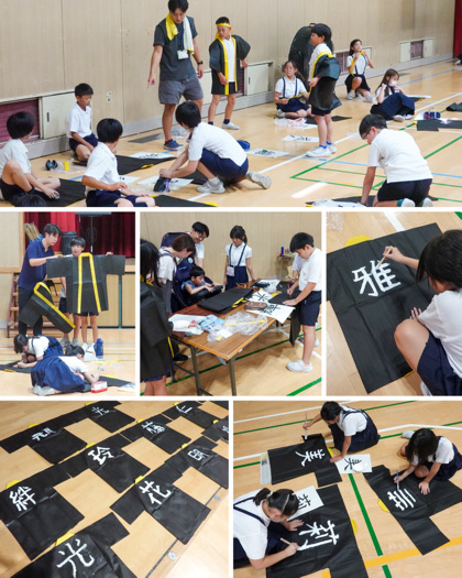 運動会でソーラン節を踊る5年生。その時に着る法被の背中の部分に、自分で決めた漢字一文字を描き込んでいたのでした。黒い法被に白い文字。目立って見えますね。Yさんも「光」という一文字を描き込んでいました。