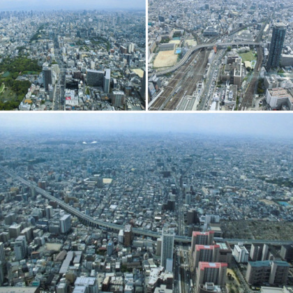 日本で2番目に高い、300mの超高層ビル、あべのハルカス。いったん16階まで上がって高速エレベーターに乗り換え、展望台のある60階へGO!