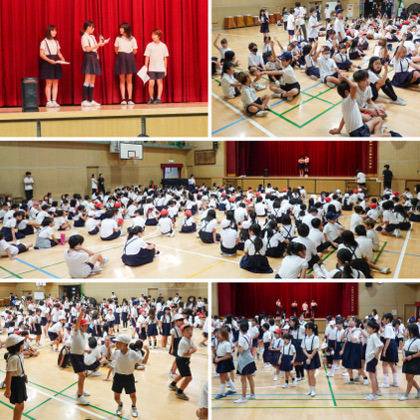 朝の時間、体育館で児童集会が行われました。集会委員会の児童が企画・運営する、今年度7回目の集会です。
