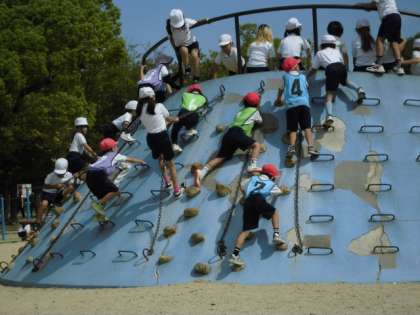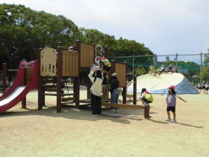 最後に長居公園の遊具で遊びました。たくさん歩いた後、お弁当やおやつをしっかり食べたので、元気回復。最後にまた、たくさん遊びました。疲れたけれど、楽しい遠足になった様子でした。
