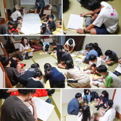 20:45から室長会議が行われました。今日の反省、布団の敷き方とシーツ処理、これからの時間の過ごし方、明朝のこと等について、M先生から話がありました。
