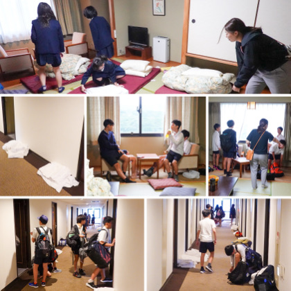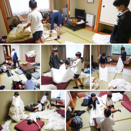 朝のつどい後、部屋に戻って片付けと身支度です。寝ぼけまなこの子もいますが、朝食の時間に間に合わせるべく、テキパキ行動!