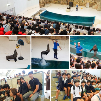 10:30からのアシカショー。パフォーマンススタジアムは満員! トレーナーとアシカの息の合ったパフォーマンス、見ごたえがありました!