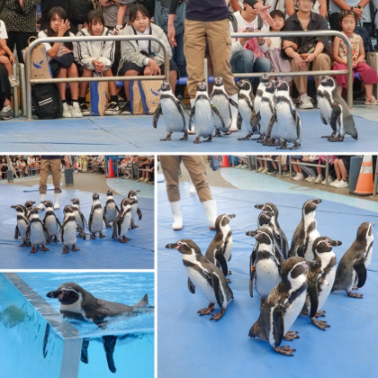 12:00からは、フンボルトペンギンの散歩タイム。よちよちペタペタ歩くかわいいペンギンを、間近で見ることができました。